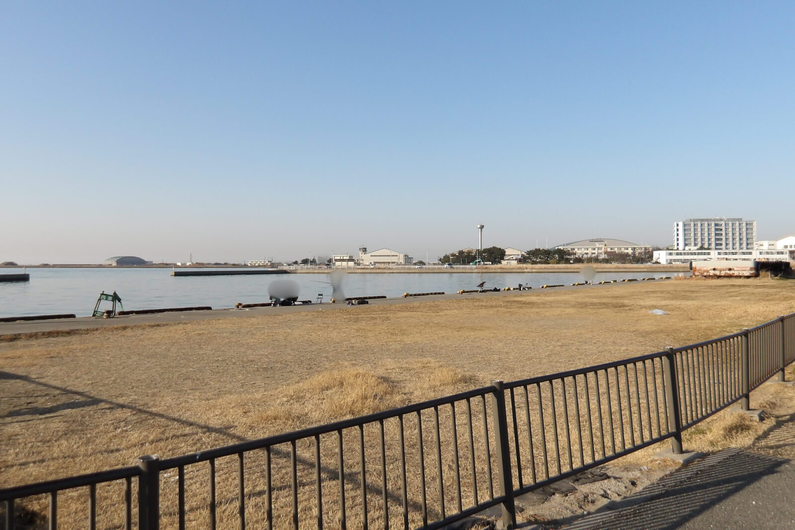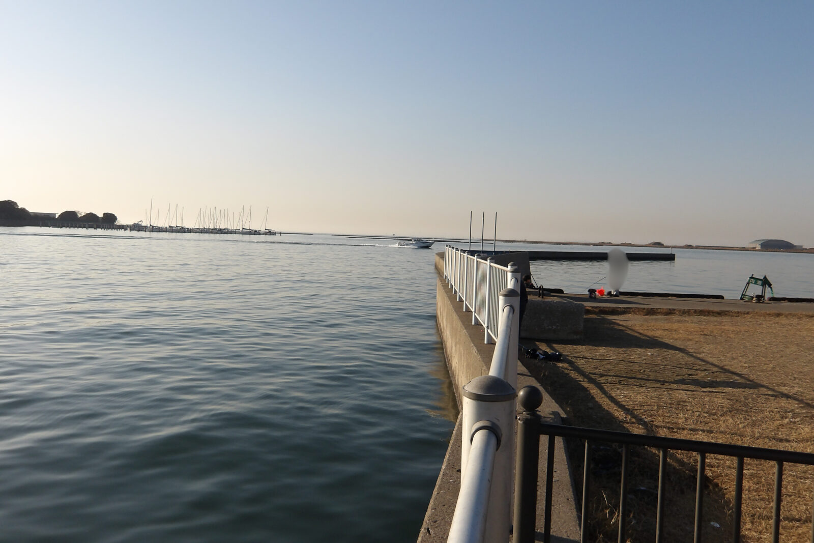 港内の護岸・岸壁。初心者でも竿を出しやすい柵と足場
