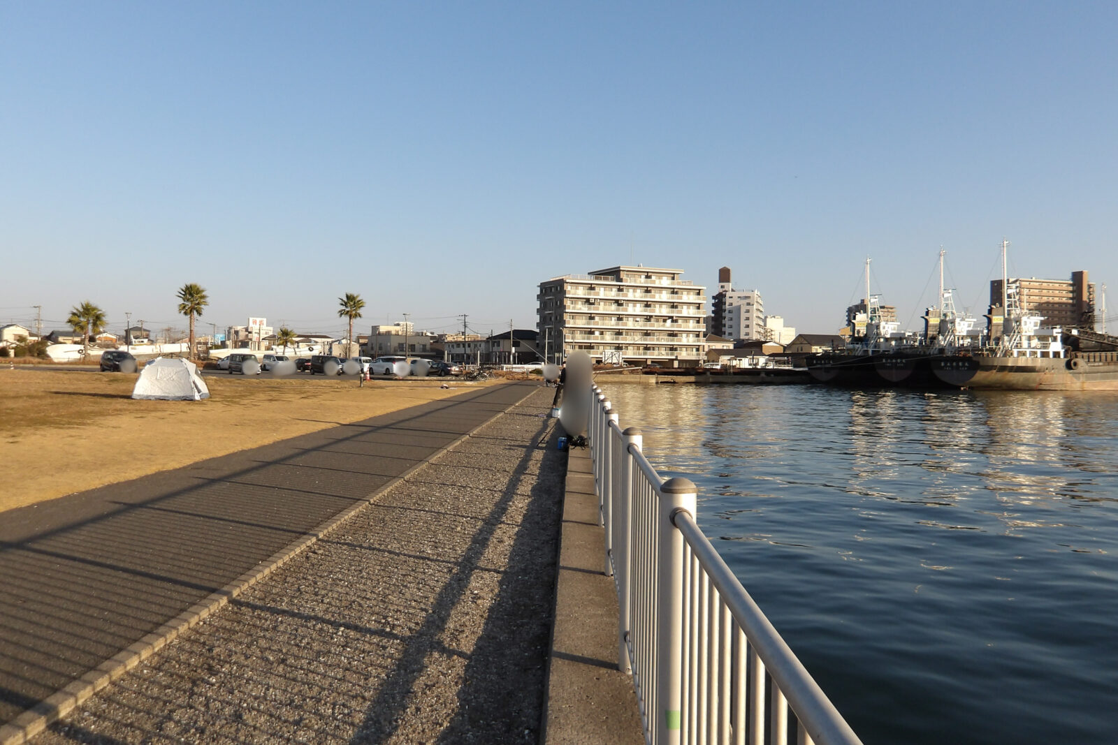 木更津内港公園と周辺のスポットは水深が浅く干潮時はほとんど足元に水位がありません。