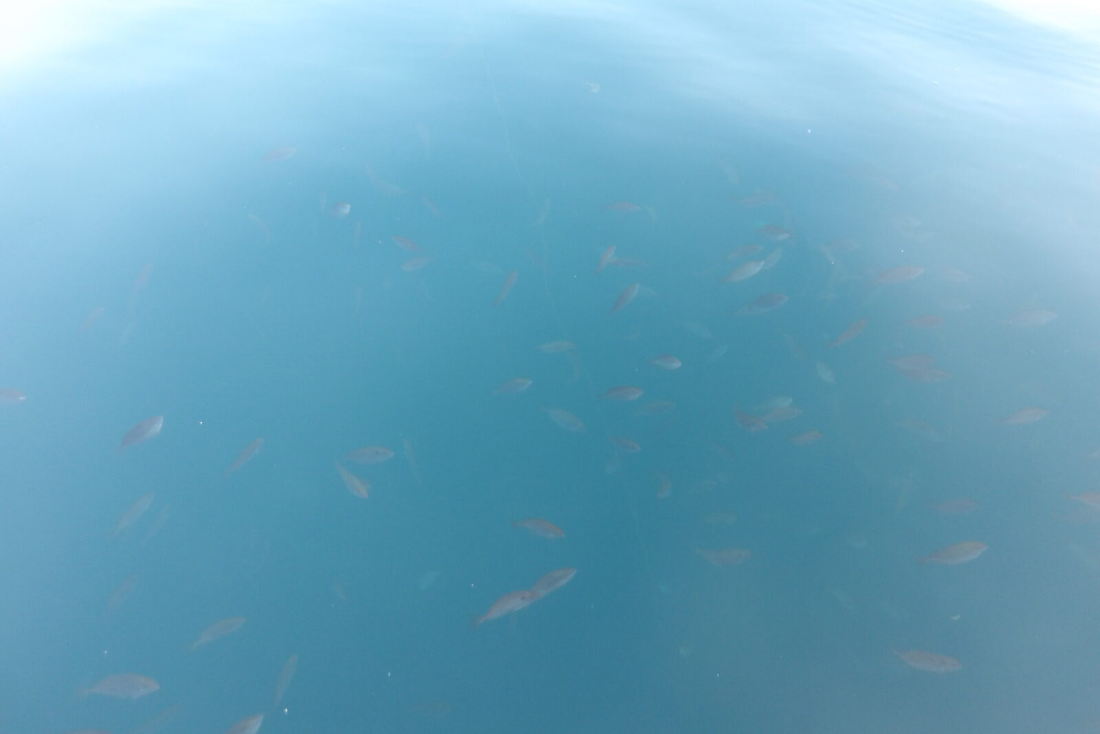 <足元の海>かなり澄んでいます。撮影日はアイゴの赤ちゃんがたくさん見えます。